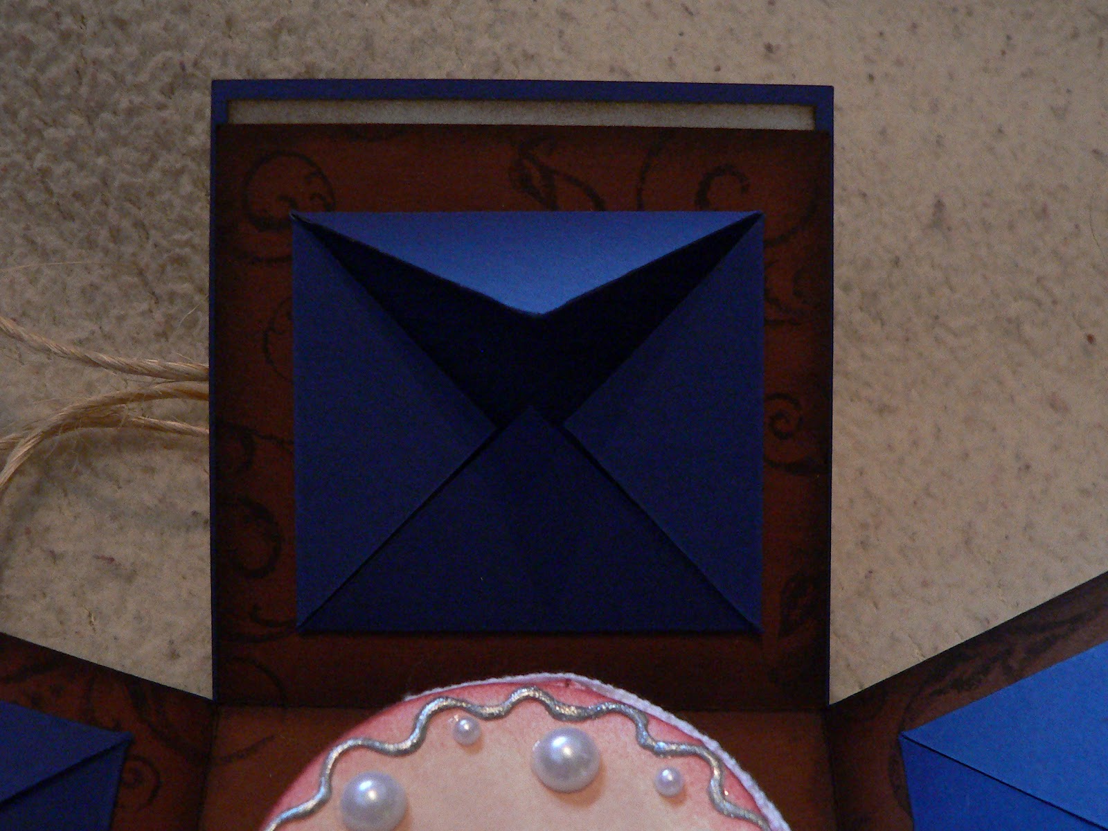 Brauner Fotokarton als Mattung, wie schon auf der Vorderseite überall zu sehen und Blümchenkarton von Action (Die Ränder wieder mit Walnut Staind gewischt, oben links und unten rechts etwas weiter nach innen.)